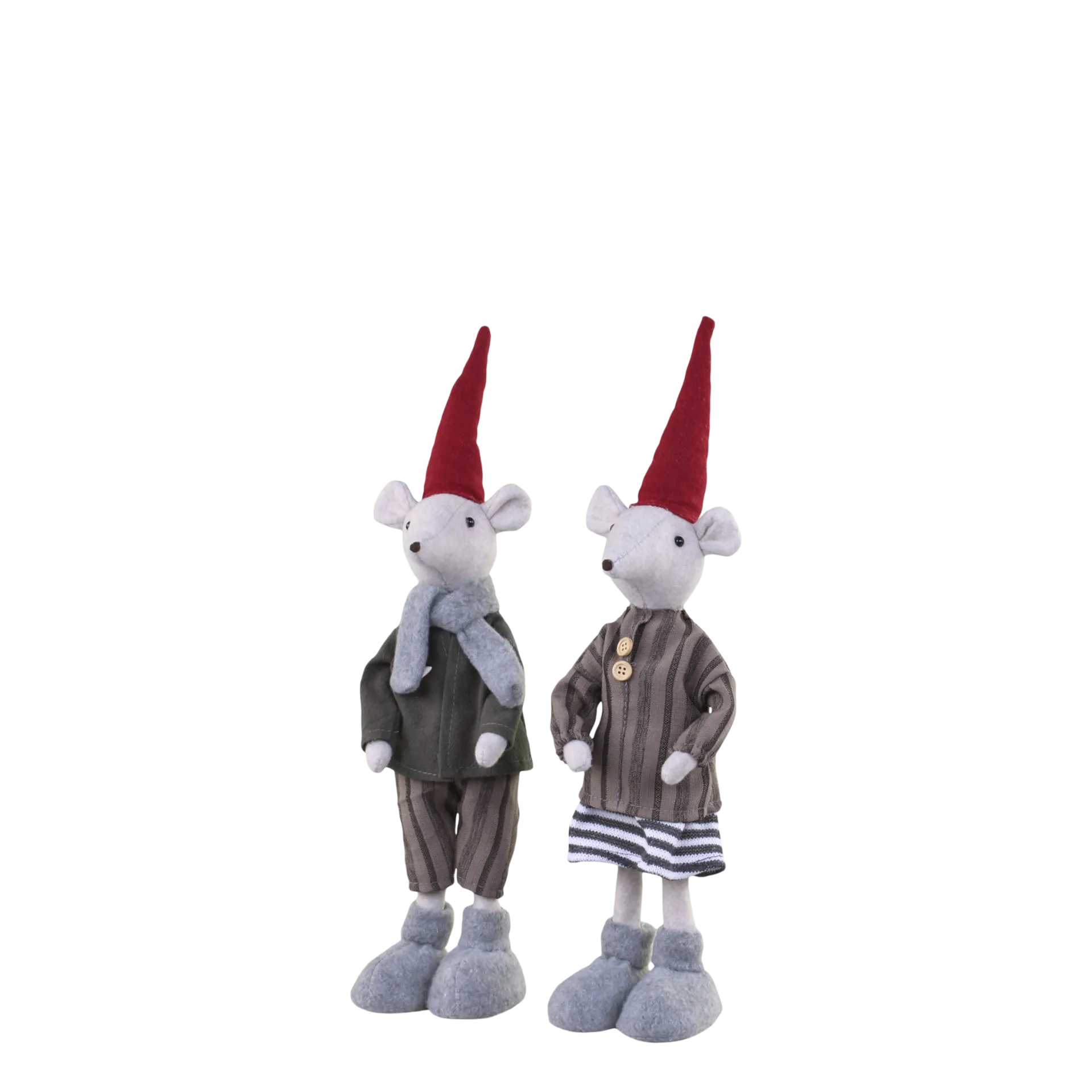 Agnes -tyttö on suloinen hiiri, joka tuo leikkisää ja jouluista tunnelmaa kotiin. Hiirityttö on pukeutunut raidalliseen mekkoon, jota koristavat luonnonläheiset sävyt. Hänen asusteenaan on kaksi pientä nappia ja raidallinen helma, jotka lisäävät hahmoon charmikasta yksityiskohtaisuutta. Hiirellä on punainen tonttulakki ja lämpimät harmaat huopatossut, jotka täydentävät hänen talvista ilmettään. Pehmeä ja lämmin olemus tekee tästä koristeesta ihanteellisen lisän joulusomistuksiin, sopien hyvin niin moderniin kuin perinteiseen joulusisustukseen. Agnes pysyy tukevasti pystyssä.