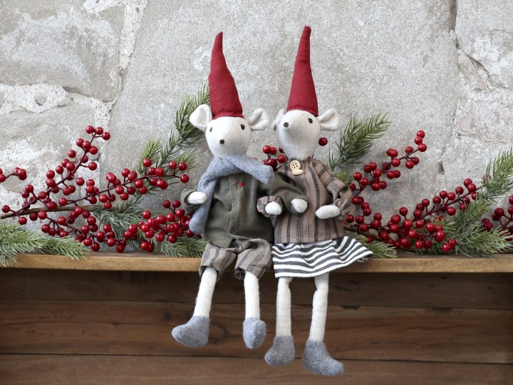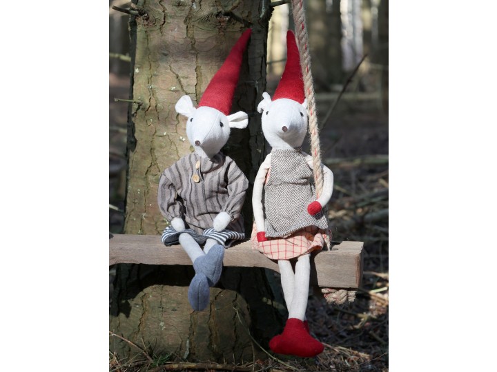 Chic Antiquen ihastuttava Agnes -hiiri. Voit laittaaa Agneksen istumaan nojatuoliin tai sohvalle. Hiirellä on yllään ruudullinen mekko ja essu. Hiiren käsiä voi taivuttaa. Hiiren korkeus 38 cm.