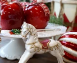 Chic Antique -keinuhevonen koriste on nostalginen ja hurmaava yksityiskohta joulun sisustukseen. Koristeessa on kauniit kullan ja punaisen sävyt sekä suloiset yksityiskohdat, kuten pieni nalle ja lahjapaketti hevosen alla. Klassinen muotoilu ja vintage-henkinen viimeistely tekevät keinuhevosesta elegantin lisän joulupöydän tai takanreunan koristeluun. Sopii myös lahjaksi perinteisen joulutunnelman ystävälle.