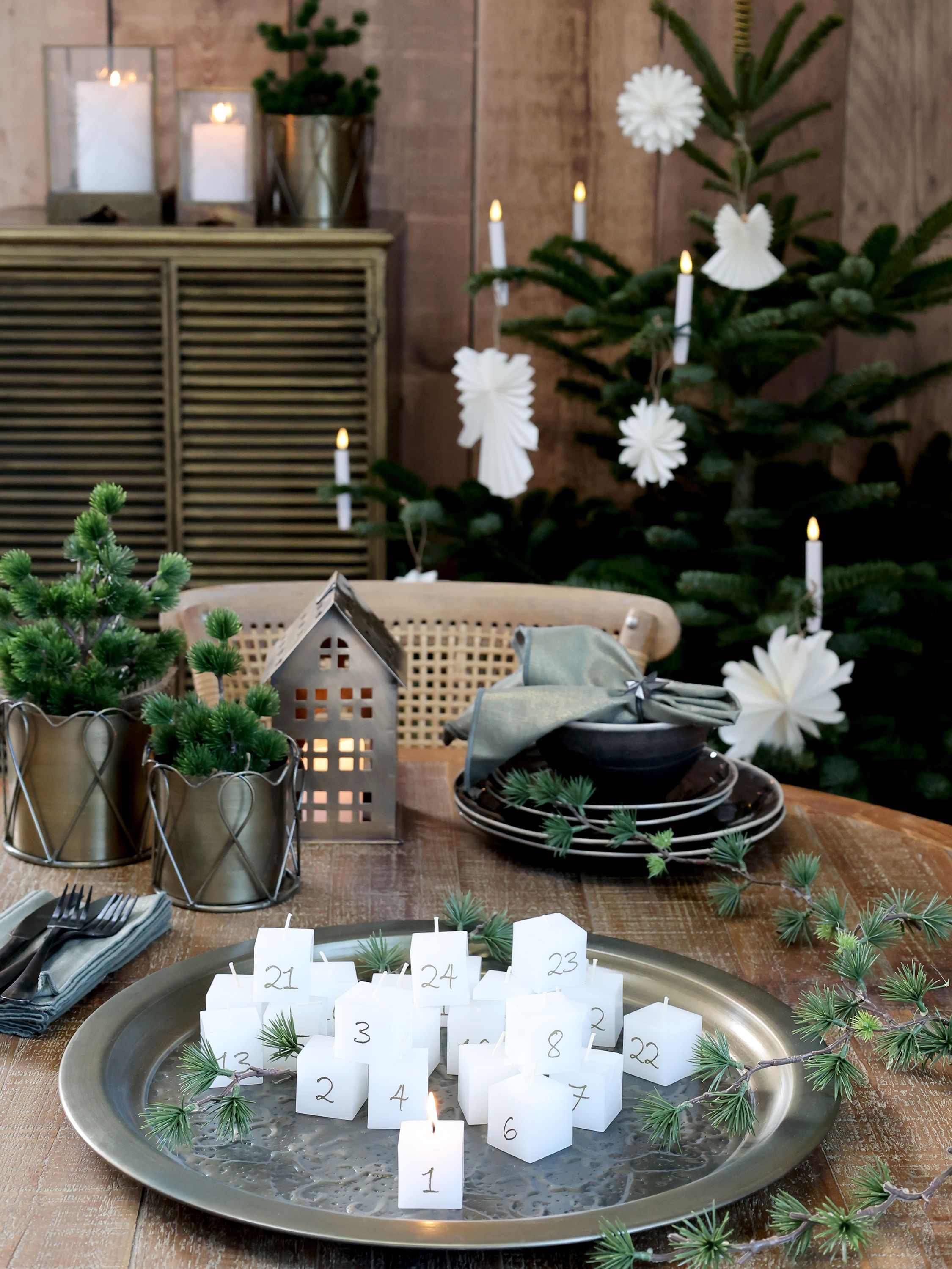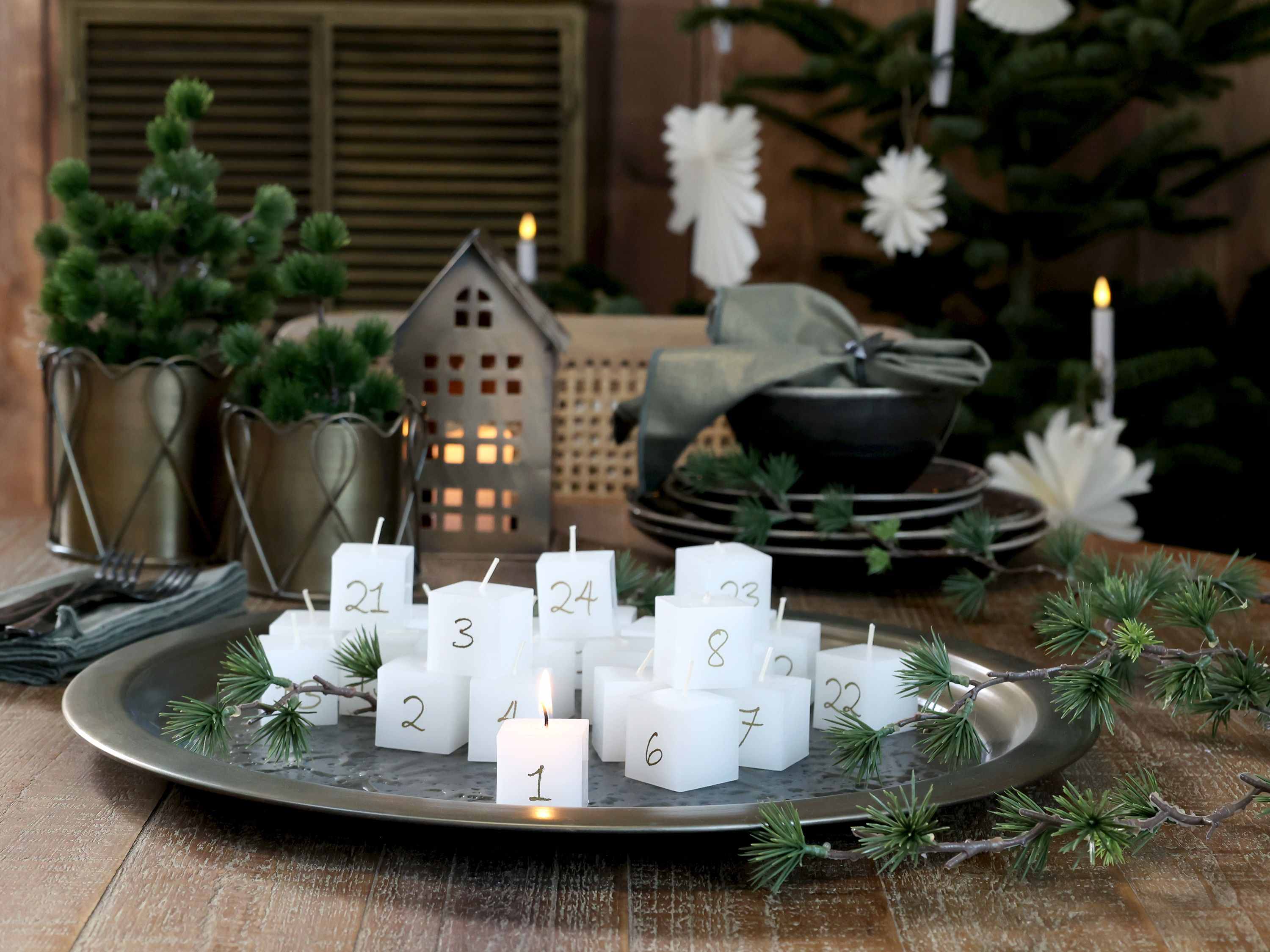 Chic Antiquen kynttilät sopivat täydellisesti sinulle, kun odotat joulun pyhiä saapuivaksi. Valkoiset kynttilät ovat neliön muotoiset. Jokaisen kynttilän kyljessä kullan värinen numero ja kynttilöitä on pakkauksessa tietenkin 24. Jokaisella päivälle oma kynttilä! Yhden kynttilän paloaika on noin 5 tuntia, joten se sopii polltettavaksi illan tai päivän aikana. Kiva antaa lahjaksi jouluttajalle!