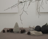 DBKD:n ihana koristepuu on kuin lumella kuorrutettu. Kauniit pyöreät muodot. Beige väri, jossa mustia pilkkuja koristeena.