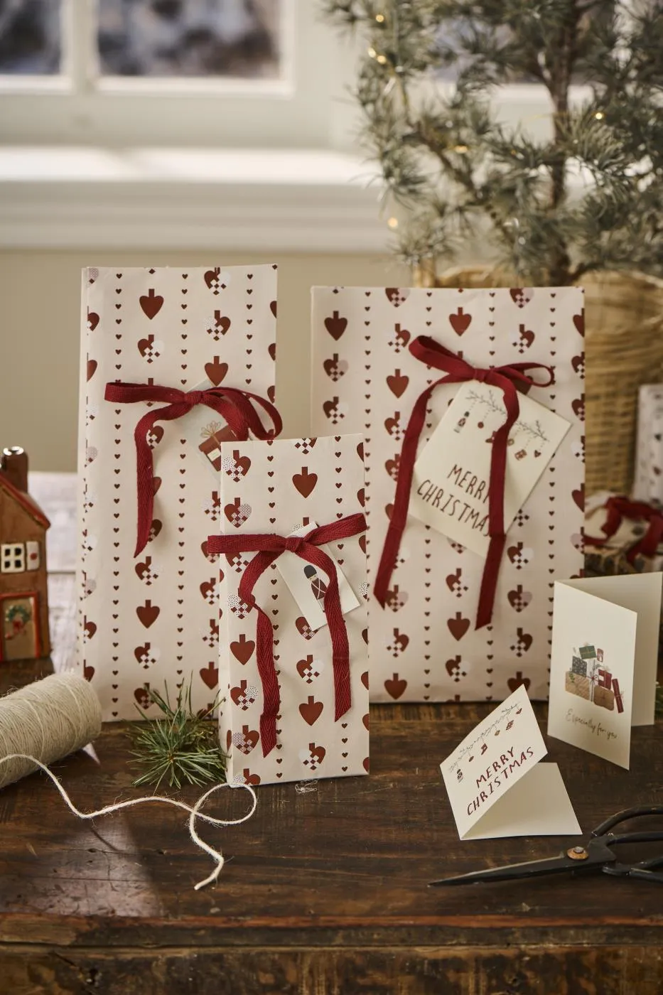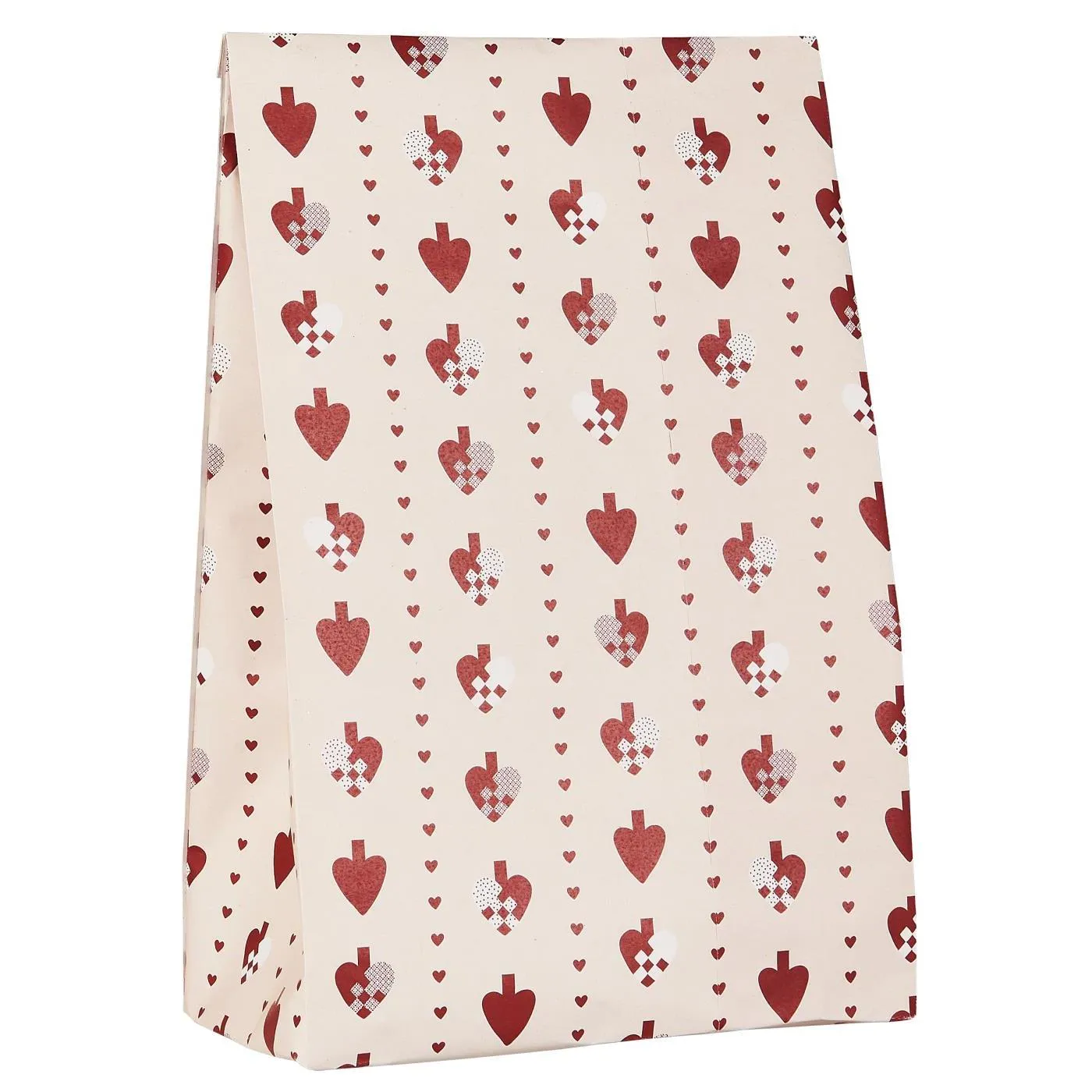 Lisää lahjoihisi sydämellistä joulutunnelmaa näillä ihanilla lahjapusseilla! Nämä kauniit sydänkuvioiset lahjapussit tekevät lahjojen paketoinnista helppoa. Klassiset punaiset sydämet ja perinteiset kudotut sydänaiheet tuovat pussien beigen taustan kanssa lämpöä ja kodikasta joulutunnelmaa. Saatavilla eri kokoisina. Tämän pussin koko 18 × 28,5 × 10 cm