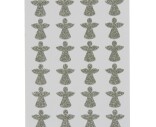 Kimaltavat hopeiset enkelin muotoiset tarrat. Arkissa on 24 kpl tarroja. Yhden tarran koko on 2.7 x 3 cm. Tarra-arkin koko on 15 x 21 cm.