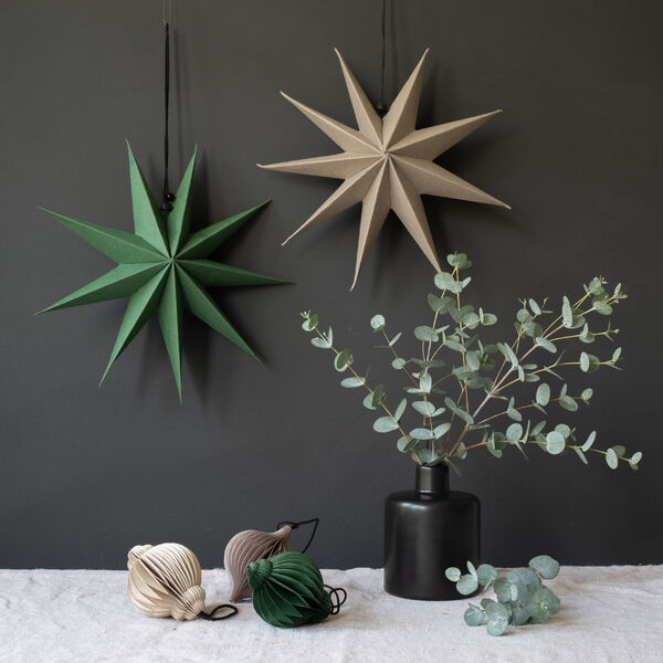 Piirongin kaunis 9-sakarainen paperitähti on valmistettu paksusta paperista. Paperitähtiä voit ripustaa ikkunnan ja muualle kotiin myös. Helppo säilyttää taitettuna seuraavaan käyttökertaan. Tähti on myös avata sillä mustassa nauhassa on lukkokiinnitys.