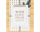Räderin kiva joulukortti tekstillä "With Love From Santa". Kortti on 2-osainen. Kortin sisäpuolella ei tekstiä. Pakkaukseen kuuluu valkoinen kirjekuori. Kortin koko 11,8 x 16,6 cm.
