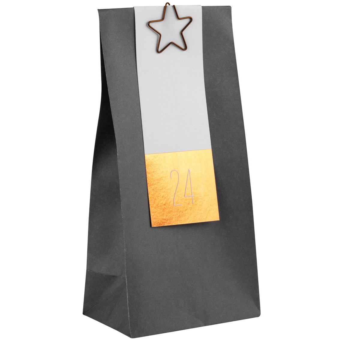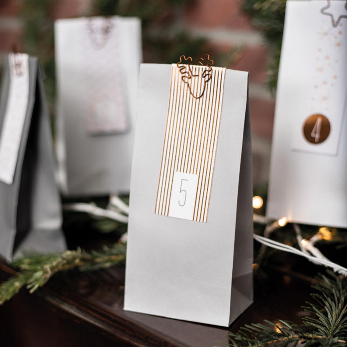 Räderin lahjapusseihin on helppo kätkeä itse tehdyn joulukalenterin yllätykset. Pakkauksessa on 24 kpl tyylikästä paperipussia, sulkemiseen sopivat paperit ja erilaisia klemmareita. Näitä voit käyttää myöhemminkin!