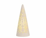 Räderin kaunis pieni valkoinen ledvalo. Materiaalina mattamainen valkoinen posliini. Muotona puu, jossa on kivasti tehty koristelu. Valo lämmin valkoinen. Tämä joulupuu luo ihanan lämpöistä tunnelmaa. Toimii kahdella LR44 paristolla, jotka sisältyvät pakkaukseen.