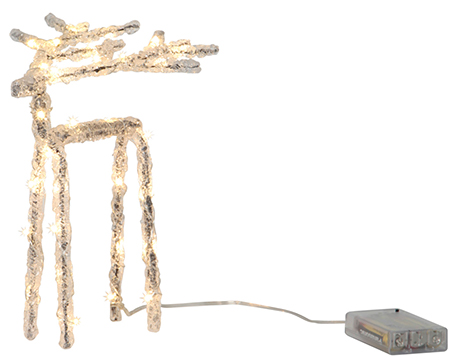 Star Trading Icy Reindeer on kaunis paristokäyttöinen ledvalo, joka sopii käytettäväksi myös muulloin kuin jouluna. Porossa on 30 kpl ledvaloa. Poro toimii 3 x AA -paristolla, jotka eivät sisälly pakkaukseen. Ajastin 6 h päällä, 18 tuntia pois päältä.