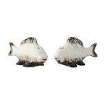 Lisää kattaukseesi merihenkistä charmia näillä upeilla suola- ja pippurisirottimilla! Keraamiset sirottimet on muotoiltu kalan muotoon ja viimeistelty käsinmaalatulla, rustiikkisella lasitteella, joka antaa niille ainutlaatuisen ja persoonallisen ilmeen. Näiden leikkisien, mutta tyylikkäiden sirottimien avulla maustaminen saa uuden ulottuvuuden – täydelliset niin arkiruokailuun kuin erityisiin hetkiin. Erinomainen lisä saaristo- tai merihenkiseen kattaukseen ja ihanteellinen lahja kaikille, jotka rakastavat persoonallisia yksityiskohtia keittiössä!