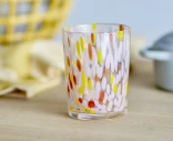Tuo kattaukseesi pirteää väriloistoa tällä upealla Bloomingville Lily -juomalasilla! Lasissa on eläväinen ja leikkisä kuviointi, jossa vaaleanpunaisen, keltaisen, valkoisen ja oranssin sävyt sulautuvat kauniisti yhteen. Lasissa on ihanan raikas ja kesäinen ilme. Tämä lasi sopii täydellisesti niin arkisiin kattauksiin kuin juhlahetkiin – käytä sitä virkistäville kesäjuomille, aamiaismehuun tai tyylikkäänä lisänä illalliskattaukseen.