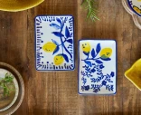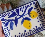 Iloisen värikäs Maxima-sarjan lautanen tuo Välimeren tunnelmaa kattaukseen. Käsin maalatut siniset reunakoristeet ja kaksi kirkkaan keltaista sitruunaa luovat raikkaan ja elävän kokonaisuuden. Jokainen lautanen on uniikki, sillä kuvioinnit tehdään käsin. Pienet vaihtelut sävyissä ja muodoissa kuuluvat osaksi sen viehätystä. Sopii erinomaisesti pieneen tarjoiluun, naposteltaville tai vaikkapa saippua-aluseksi kylpyhuoneeseen.