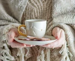 Lisää juhlan tuntua kattaukseesi tällä elegantilla mukilla. Mukissa on herkkä beige pohjaväri. Sen kyljessä kaunis kohokuvioinen enkelikuviointi ja ylelliset kultaiset yksityiskohdat. Muki sopii täydellisesti niin aamiaishetkiin, naposteltaville kuin jouluisen juhlapöydän tarjoiluihin.