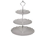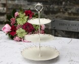 Chic Antiquen shabby chic -tyylinen metallitarjotin, jossa on kolme kerrosta. Antiikkivalkoinen väri tuo vanhan ajan hieman patinoitunutta tunnelmaa. Tämä kerrostarjotin on helppo säilyttää osissa, saat varren ruuvattua irti kolmessa osassa. Jos laitat elintarvikkeita tarjolle, suojaa tarjottimen pintaa vaikkapa leivinpaperilla tai kakkupaperilla.