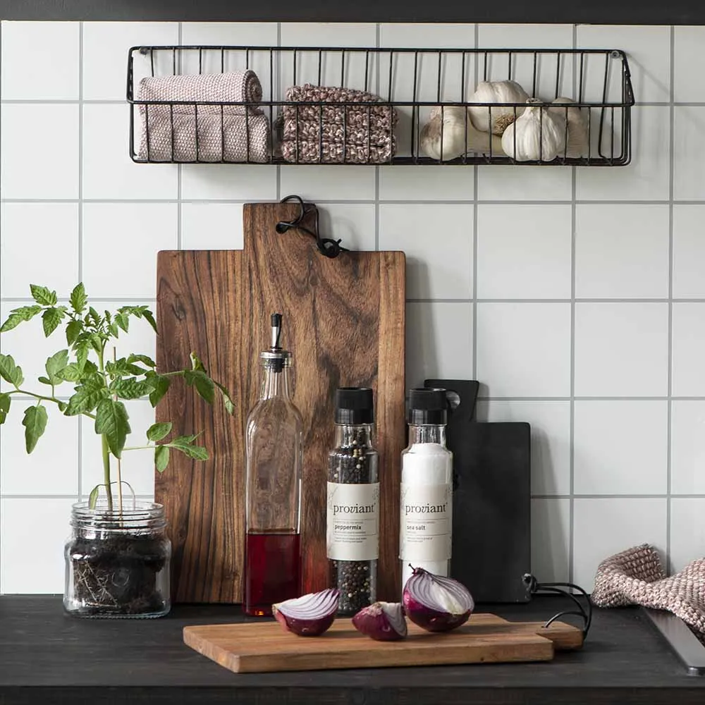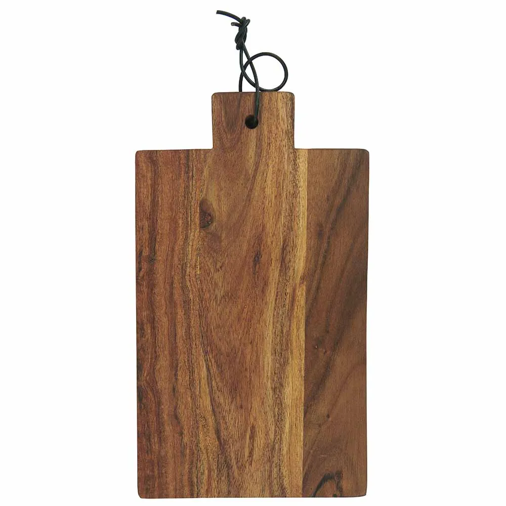 Ib Laursenin leikkuulauta on valmistettu kauniista ja kestävästä akaasiapuusta. Luonnollinen puunsyy tekee jokaisesta laudasta yksilöllisen ja tuo lämpöä keittiön sisustukseen. Monikäyttöinen lauta toimii niin ruoanlaitossa, leivän tai juustojen tarjoilussa kuin osana kattausta. Nahkanyöri tekee ripustamisesta helppoa ja lisää rustiikkista ilmettä.
