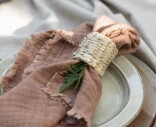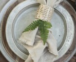 Ib Laursenin kauniistu punottu servettirengas. Ihana kesäisten lautasliinojen kanssa! Näillä viimeistelet kesäisen kauttauksesi. Materiaalina osmankäämi.