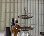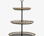 Nordalin kevyt mutta tukeva kerrostarjotin. Siinä on kolme vatia. Vadit on valmistettu mustaksi lakatusta raudasta. Pehmeyttä kerrostarjottimeen tuo vatien vaaleanruskeat bambureunat. Yksinkertainen ja kevyt muotoilu, jonka ansiosta sitä on helppo käyttää missä tahansa sisustuksessa.