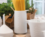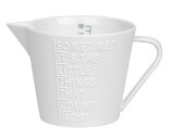 Räderin hauska valkoinen mittakannu. Kannun ulkopuolella teksti "Sometimes it is the little things that count the most". Sisäpuollella mustalla painettu mitta-asteikko 700ml asti.