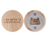 Räderin pullonavaaja hauskalla tekstillä "I am open to everything".