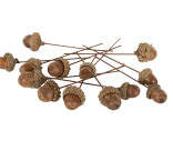 Kauniita tammenterhoja voit käyttää kransseissa ja erilaisissa asetelmissa. Yhdessä kimpussa on viisi tammenterhoa ja helposti taivuteltavat metallilangat. Kaikki tammenterhot ovat hieman erilaisia. Koko on noin 2,5 cm.