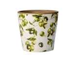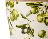 Tämä Affarin Olive -ruukku tuo sisustukseen Välimeren charmia ja luonnonläheistä kauneutta. Sen vaalea pohja on koristeltu kauniilla oliivipuun oksilla ja mehukkailla vihreillä sekä tummilla oliiveilla, jotka luovat rustiikkisen ja eläväisen ilmeen. Ruukun klassinen kartiomainen muoto ja kevyesti patinoitu reuna antavat sille vintage-henkisen ilmeen, joka sopii täydellisesti viherkasveille, kukille tai yrteille.