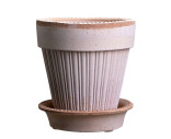 Bergs Potterin Simona ruukuissa on pariisilainen malli. Sitä löytyi ranskalaisista kodeista erityisen paljon vuosien 1820-1860 välillä. Bergs Potterille malli kulkeutui Montmartren kirpputorin kautta ja nykyään sitä tehdään käsityönä Italian Toscanassa. Ihana romanttinen ruukku on kaunis ja sopii monenlaisten kukkien kanssa. Kasvit viihtyvät näissä saviruukuissa. Ruukku tummentuu ja patinoituu kauniisti kastelun johdosta ajan mittaan. Ruukun pohjassa on reikä. Mukana tulee alusvati. Aluslautanen on käsitelty silikonilla, joten se kestää hyvin vettä.