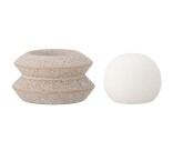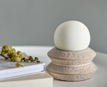 Bloomingvillen kannettavassa Capella-valaisimessa on ihastuttava, yksinkertainen muotoilu. Sen alusta on valmistettu kivitavarasta. Pallon valo on lämmin keltainen. Tätä pientä paristovalaisinta on helppo liikutella ympäri taloa, minne ikinä haluatkin tunnelmaa.