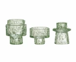Bloomingvillen Delphia-kynttilänjalka vihreässä sävyssä on kauniin rouhea yhdistelmä orgaanista muotoilua ja läpikuultavan vihreää lasia. Epäsäännöllinen pinta tuo valon kauniisti esiin ja tekee jokaisesta kynttilänjalasta hieman erilaisen. Hillitty vihreä väri sopii kauniisti niin luonnonläheiseen kuin skandinaaviseen sisustukseen. Yhdistä useampi eri korkeutta oleva jalka näyttäväksi ryhmäksi tai käytä yksinään tuomaan tunnelmaa.