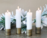 Chic Antiquen kätevät kynttilänjalat toimivat magneetilla. Aseta metallisen lyhdyn pohjalle tai metallitarjottimelle. Kynttilänjalat sopivat noin 2cm paksuiselle kruunukynttilälle. Pakkauksessa on 4kpl, joita voit käyttää kaikkia yhtä aikaa tai erikseen. Kiva lahjaidea ystävällä kynttilöiden kanssa!