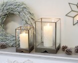 Kaunis Chic Antiquen lyhty. Yhdessä lasissa kuviointi, joka näkyy kynttilän palaessa. Käytä tavallista kynttilää tai ledkynttilää. Tästä lyhdystä saatavilla myös isompi koko.