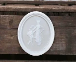 Ihastuttava pieni koriste seinälle. Koristeessa on hahmoja, ehkäpä enkeleitä, tanssimassa. Sopii hyvin seinälle muiden taulujen sekaan vaikkapa lastenhuoneeseen.
