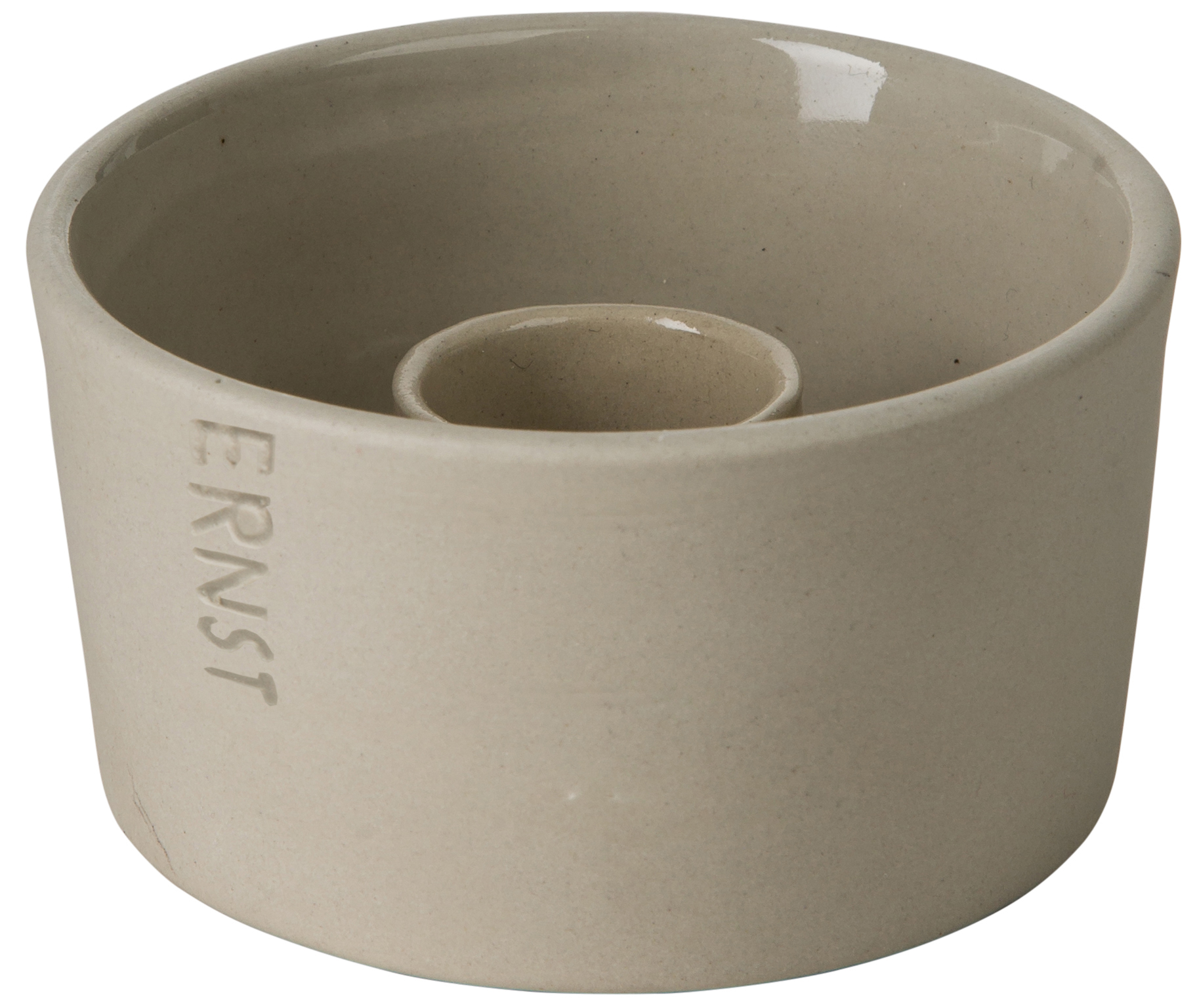 ERNSTin tyylikäs pyöreä kynttilänjalka. Kaunis mattamainen keramiikkapinta. Väri beige. Kylkeen painettu teksti "ERNST".