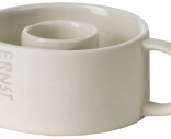 Tämä ERNSTin viehättävä kynttilänjalka hurmaa yksinkertaisella mutta oivaltavalla muotoilullaan. Pienen kahvan muotoinen korva tuo siihen ripauksen leikkisyyttä ja persoonallisuutta. Se on aivan kuin pieni muki kynttilälle. Valkoinen, mattapintainen kivitavara sopii kauniisti niin moderniin kuin perinteisempään sisustukseen ja tuo kotiin rauhallista tunnelmaa.