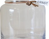 ERNSTin kaunis maljakko. Voit käyttää sitä myös lyhtynä kynttilälle. Suuaukon ympärillä nahkanauha, jossa metallinen merkki "ERNST". Yksinkertainen ja suora malli. Helppokäyttöinen koko, joka sopii yhtä hyvin kukille tai kynttilälle.