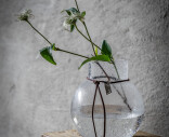 ERNSTin pelkistetyt pyöreät lasimaljakot ovat aina olleet asiakkaidemme suosikkeja. Ne ovat täydellisiä lahjoja ja moni on hankkinut tämän perusmaljakon myös omaan kotiin. Nyt tätä maljakkoa on tuunattu yksi askel ylöspäin! Maljakossa on runsaasti pieniä ilmakuplia, jotka ovat niin upeita kun valo osuu maljakkoon.Siinä on koristeena tummanruskea nahkanauha ja perinteinen metallilaatta, jossa lukee ERNST.
