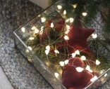 Erilaisilla ledvaloilla saat luotua kotiisi lämmintä tunnelmaa niin sisällä kuin ulkona. Tässä paristokäyttöisessä valosarjassa on 40 pientä sydämillä koristettua valonlähdettä. Tämä valosarja sopii myös ulkokäyttöön. Valosarjassa ajastin: 6 tuntia päällä, 18 tuntia pois päältä. Sen pituus on 4,2 metriä. Saat valot toimimaan 3 x AA -paristolla. Ne voit hankkia erikseen.