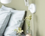Ib Laursenin käytännöllinen seinävalaisin sopii moneen tilaan. Saat käänneltyä sitä tarvitsemaasi suuntaan. Myös valaisimen kupua voit kääntää eri suuntiin. Kuvun sisäpuoli on valkoinen ja se heijastaakin valoa hyvin. Erinomainen kohdevalaisin makuuhuoneessa, työhuoneessa ja keittiössä. Raikas valkoinen väri. Valkoinen kangaspäällysteinen johto viimeistelee ilmeen.