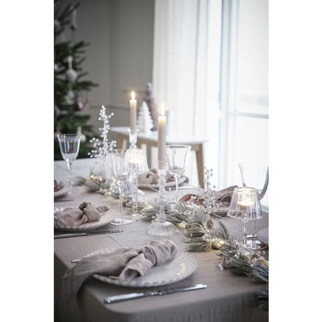 Astalina-kynttilänjalka on Lene Bjerren kaunis ja siro lasinen kynttilänjalka. Se tuo kattaukseen ja sisustukseen ylellistä keveyttä. Kirkas lasi heijastaa kynttilänvalon kauniisti ja luo rauhallisen tunnelman esimerkiksi olohuoneeseen, makuuhuoneeseen tai kattauksen keskelle.