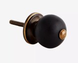 Musta nuppi messingin värisillä yksityiskohdilla. Nupin halkaisija 3 cm.