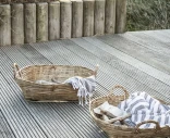 Luonnollista kauneutta ja käytännöllistä säilytystä! Merakin Tradition-sarjan matala kori on punottu rustiikkisesta luonnonmateriaalista. Pehmeän pyöreä muoto sekä kaksi kahvaa tekevät siitä täydellisen valinnan niin sisustukseen kuin arjen säilytykseen. Käytä esimerkiksi vilttien, pyyhkeiden, lehtien tai vaikka puutarhavälineiden säilyttämiseen – sisällä tai katetulla terassilla. Tradition-sarjan koreissa yhdistyy ajaton muotoilu ja aito käsityön tuntu – kaunis säilytysratkaisu osaksi kodikasta sisustusta.