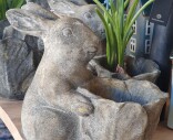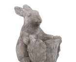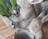 Miljögårdenin viehättävä harmaa ruukku, jossa on söpö jänis syleilemässä kukkaa. Tämä ruukku on kaunis koriste kodissasi. Ruukku on valmistettu betonia muistuttavasta materiaalista polyresiinistä, joka on sekä kestävä että helppo puhdistaa. Ruukun betonimainen ulkonäkö antaa sille rustiikkisen ja modernin vaikutelman, joka sopii täydellisesti mihin tahansa sisustustyyliin.