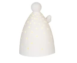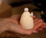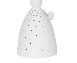 Ihastuttava pieni posliininen enkeli ledvalolla. Enkelillä on simppeli muotokeli. Sen juttu on lukuiset pienet reiät, joista ledvalo heijastuu tunnelmallisesti. Kokonaisuuden viimeistelee pikkuruiset siivet. Pakkauksessa saat mukana ensimmäiset 3 kpl LR44 paristoa.