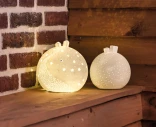 Räderin ladattava LED-valo on hurmaava, valkoisesta keramiikasta valmistettu koristevalo, jonka pinnassa loistaa tähtikuvio. Koristten valon päällä on kaksi pientä suloista taloa. Valon sisällä on kiinteä LED-moduuli ja ladattava akku, joka toimii ilman johtoa. Akku ladataan mukana tulevalla USB-kaapelilla. Täyteen ladattuna valo palaa noin 15 tuntia. Kaunis ja käytännöllinen valaisin tuo pehmeää valoa niin makuuhuoneeseen, olohuoneeseen kuin lastenhuoneeseenkin.