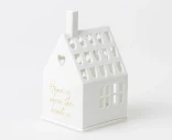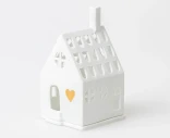 Satumaisen kaunis posliininen talolyhty tuo lämpöä ja tunnelmaa kotiin. Räderin valkoinen pieni talolyhty on ihastuttava yksityiskohta niin hyllylle, ikkunalaudalle kuin kattaukseenkin. Kullansävyinen sydän koristaa julkisivua,. Talon toiseen päätyyn painettu kultateksti "Home is where the heart is". Se tekee lyhdystä erityisen merkityksellisen. Taloon voit asettaa aidon tuikun tai ledtuikun. Talossa on lukuisia ikkunoita seinissä ja katossa, joten kynttilän valo pääsee hehkumaan talossa tunnelmallisesti.