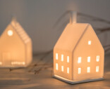 Räderin valkoisesta posliinista tehty ihastuttava pieni talo. Alustalle sopii pieni lämpökynttilä. Kaunista mattapintaista posliinia. Talon ikkunoista heijastuu tunnelmallinen lämmin valo. Räderin valikoimasta löytyy erilaisia taloja, joista voit kerätä kauniin asetelman senkin päälle tai ikkunalaudalle.