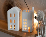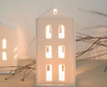 Räderin valkoisesta posliinista tehty ihastuttava pieni talo. Alustalle sopii pieni lämpökynttilä. Kaunista mattapintaista posliinia. Talon ikkunoista heijastuu tunnelmallinen lämmin valo. Räderin valikoimasta löytyy erilaisia taloja, joista voit kerätä kauniin asetelman senkin päälle tai ikkunalaudalle.