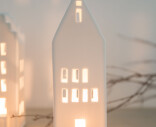 Räderin valkoisesta posliinista tehty ihastuttava pieni talo. Alustalle sopii pieni lämpökynttilä. Kaunista mattapintaista posliinia. Talon ikkunoista heijastuu tunnelmallinen lämmin valo. Räderin valikoimasta löytyy erilaisia taloja, joista voit kerätä kauniin asetelman senkin päälle tai ikkunalaudalle.