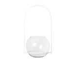 Tämä tyylikäs ripustettava lyhty yhdistää lasin kepeyden ja metallikehyksen tukevuuden elegantiksi kokonaisuudeksi. Pyöreä lasiosa tuo pehmeää ja ajattoman modernia ilmettä, ja sitä voi käyttää paitsi kynttilälyhtynä, myös upeana maljakkona kukille tai vihreille oksille. Ripusta lyhty sisälle tai katetulle terassille, ja anna sen luoda pehmeää valoa iltoihisi tai tuoda tilaan ripaus luonnon inspiroimaa kauneutta kukkien tai kasvien kautta. Tämä monikäyttöinen koriste sopii täydellisesti osaksi minimalistista, skandinaavista tai romanttista sisustustyyliä.