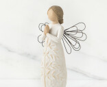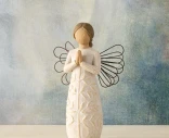 A Tree, A Prayer on hiljaisen läsnäolon ja rukouksen enkeli. Kädet yhdessä rintakehän edessä ja pukuun kaiverrettu puumainen kuvio symboloivat juurtumista, elämän voimaa ja toivoa. Enkelin lempeä olemus kutsuu rauhoittumaan ja luottamaan kuin hiljaiseen rukoukseen, joka kohoaa kohti taivasta. Enkelin sirot metalliset siivet viimeistelevät rauhaa huokuvan kokonaisuuden. Tämä figuuri on lohdullinen lahja vaikeina hetkinä, henkiseksi tueksi tai muistoksi.
