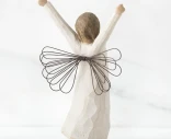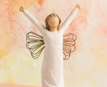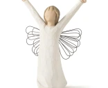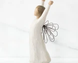 Courage on voiman, rohkeuden ja elämänvoiman ylistys. Enkeli seisoo kädet kohotettuina ilmaan. Eleessä on vapautta, voittoa ja sisäistä päättäväisyyttä. Hahmon ilmeikäs mutta yksinkertainen olemus muistuttaa meitä siitä, että rohkeus ei ole pelon puutetta, vaan sydämen päättäväisyyttä kulkea eteenpäin vaikeuksista huolimatta. Sirot metalliset siivet tuovat enkelille keveyttä ja toivoa. Täydellinen lahja uudessa elämänvaiheessa olevalle, tukea tarvitsevalle tai voimaantumisen symboliksi omaan kotiin.
