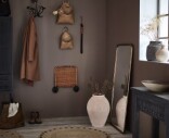 Affarin pyöreä juuttimatto. Juuttimaton ilmettä piristää hauskat puuvilllasta tehdyt mustat pilkut. Maton halkaisija on 100 cm.